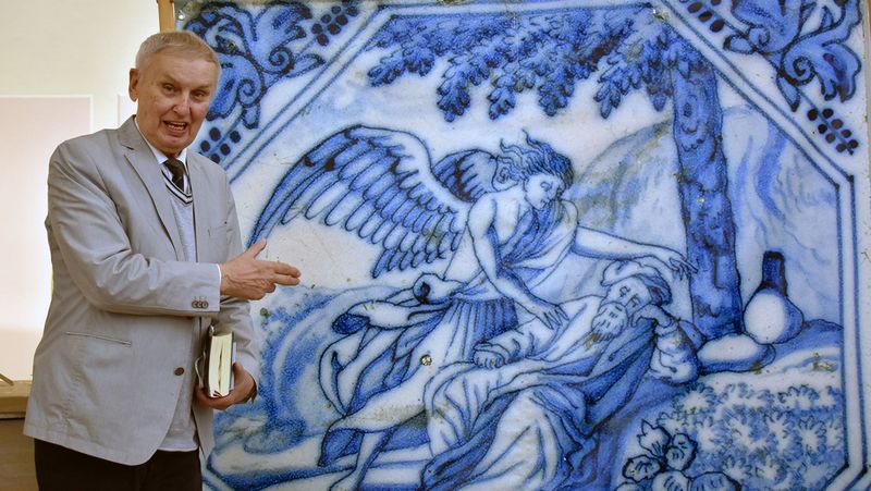 Im Mittelpunkt stand eine 250 Jahre alte Bibelfliese, im Original 13x13 Zentimeter, die im Großformat im Altarraum präsentiert war. Sie zeigte Elija unterm Ginsterstrauch. Mitglieder des Bibelfliesenteams stellten in szenischen Lesungen die biblische Geschichte hinter dem Motiv dar: Das erste Buch der Könige erzählt im 19. Kapitel davon, wie Elija seine Kraft verliert. Voller Angst vor seinen Feinden flieht er in die Wüste. Nach Jahren des kämpferischen und kräftezehrenden Eintretens für Gott hat er genug. Er setzt sich unter einen Ginsterstrauch, wüscht sich den Tod und schläft ein. Doch kaum ist er eingeschlafen, rührt ein Engel ihn an und fordert ihn auf zu essen. Elija isst und trinkt und legt sich dann wieder schlafen. Doch der Engel bleibt hartnäckig und weckt ihn erneut: „Steh auf und iss“, sagt er zu ihm. Und tatsächlich gewinnt Elija neue Kraft.
