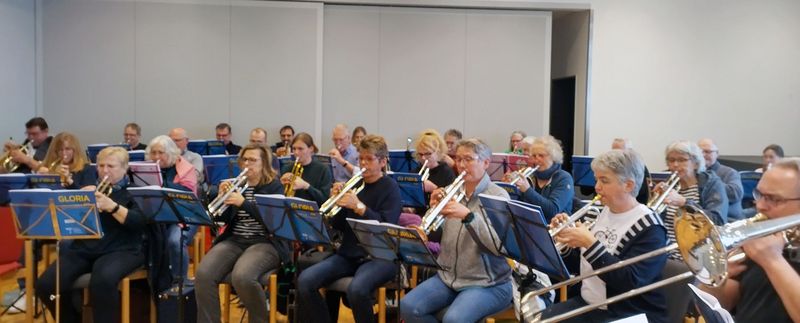Unter der Leitung von Ursula-Maria Busch und Landesposaunenwart Andreas Tetkov (EKvW) bereiteten sich die Musiker auf den Deutschen Evangelischen Posaunentag vor, der vom 3. - 5. Mai in Hamburg stattfindet. Dieser Posaunentag findet nur alle acht Jahre statt. Es treffen sich Blechbläser*Innen aus ganz Deutschland, mehr als 17.500 haben sich angemeldet und wir sind dabei!