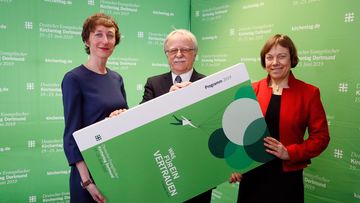 Präses Dr. h. c. Annette Kurschus ist Themenbotschafterin dieses Roten Fadens. Bei der Präsentation des Kirchentagsprogramms am 11. März stellte sie die westfälischen Akzente vor.