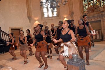 Mit viel Geduld hatten die jungen Frauen und Männer an den Vortagen mit den Workshop-Teilnehmern eine Reihe von Liedern eingeübt, gewartet bis die für Europäer ungewohnten Klicklaute der afrikanischen Stammessprache Khoekhoegowab saßen. Was die Muttersprachler aus Namibia naturgemäß aus dem Effeff beherrschten, erarbeiteten sich die Westfalen mit einiger Mühe, noch mehr Gelächter und am Ende mit Erfolg. Davon konnten sich im Konzert unter dem Motto „Der Funke springt über“ alle überzeugen.