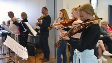 Am Sonntagmorgen umrahmten die Dozenten den Taufgottesdienst, am Nachmittag kamen alle Teilnehmer in entspannter Stimmung zum Abschlusskonzert. „Das Festival ist ein immer wieder überraschendes Ideenfeuerwerk“, freute sich Martin Behrens. Dramaturgische Kapriolen und das gemischte Niveau machten den Reiz aus. Es gibt keine Messlatte, jeder kann seine Fähigkeiten umsetzen. Auf der Freitreppe vor dem Haus standen sich die Sänger gegenüber, auf der Plattform musizierte das Klassikensemble. Zuhörer und Musizierende vermischten sich, der Chor sang „Come Now's the Time to Worship“, Bläser und Streicher ließen das „Sekundpendel“ schwingen und die Jazz-Combo erfreute mit Film-Soundtracks aus den Weiten des Weltalls. Zum Schluss gingen die Zuhörer mit Kaffee und Keksen nach draußen und lauschten dem „Fensterkonzert“. Über den Uhrenkanon steigerte sich das musikalische Feuerwerk zu einem Finale furioso.