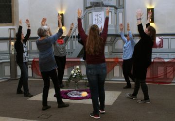 Waren die Besucherzahlen zu Beginn erst verhalten, fanden nach und nach immer mehr den Weg in die Kirche, sodass die lange Tafel, die nach der Hälfte des Abends zu einer gemeinsamen Zwischenmahlzeit lud, bis auf den letzten Platz besetzt war. Bei einer Hochzeitssuppe war Zeit für Austausch, bevor die Veranstaltung später mit einem Spielfilm ausklang. „Monsieur Claude und seine Töchter“ fasste die Erfahrungen der alle Grenzen überwindenden Liebe, die sicherlich viele Besucher während des Abends gemacht haben mochten, noch einmal eindrucksvoll zusammen.