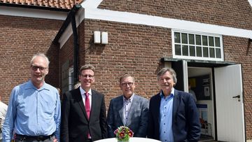 Zum Abschluss des Gottesdienstes informierte Johannes Helweg-Löllmann, der Vorsitzende des Trägervereins, über die bleibende Bedeutung der Bodelschwingh-Kirche für den westlichen Teil der Lengericher Kirchengemeinde: „Unsere Kirche ist für die Ortsteile Antrup, Aldrup, Exterheide, Wechte und Teile des westlichen Stadtgebiets von Lengerich zuständig. Der Trägerverein hat derzeit 80 Mitglieder und bekommt tatkräftige Unterstützung von den Lengerichern“. Er freue sich über die vollbesetzte Kirche, das sei nicht immer so. „Wir pflegen Gemeinschaft und haben eine gute Verbundenheit mit Menschen und Vereinen vor Ort. Wir sind ein Stück Gesellschaft für die Menschen“, so Helweg-Löllmann weiter. Die Zahl der Gratulanten war groß: Die Sparkasse Lengerich überreichte 500 €, der MGV Antrup/Höste übergab eine neue Klinke für die Fluchttür der Kirche. Auch der Schützenverein Wechte und der Trägerverein der Johanneskirche Stadtfeldmark hatten eine Spende dabei. Ute Miensopust, Kirchmeisterin der Ev. Kirchengemeinde Lengerich, wünschte dem Trägerverein weiterhin viel Unterstützung und tolle Ideen. Bei Fingerfood und Getränken ließen die Besucher den Vormittag auf der „Domplatte“, dem vom Trägerverein gepflasterten Kirchvorplatz, ausklingen.
