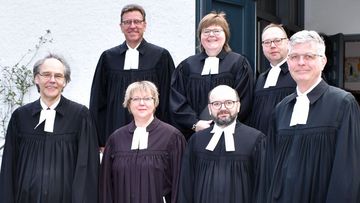 Fällt eine Gemeindepfarrerin oder ein Gemeindepfarrer länger aus oder entsteht durch einen Weggang oder Pensionierung eine längere Vakanz, dann kommen zukünftig die vier Neuen ins Spiel und unterstützen die Kirchengemeinden vor Ort. „Wir gehen neue Wege mit diesen neu eingerichteten Vertretungspfarrstellen“, erläuterte Superintendentin Susanne Falcke (Kirchenkreis Steinfurt-Coesfeld-Borken), die gemeinsam mit ihren Kollegen André Ost (Kirchenkreis Tecklenburg) und Holger Erdmann (Kirchenkreis Münster) den Gottesdienst leitete. Die Evangelische Kirche von Westfalen finanziert die Vertretungspfarrstellen, um die Kirchenkreise und Gemeinden so zu entlasten.