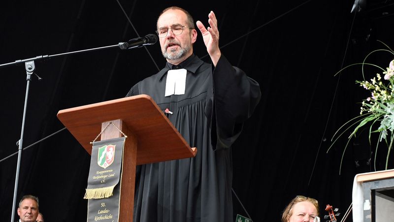 Andreas Finke predigte über eine Passage aus dem 19. Kapitel des Lukasevangeliums. „Gottvertrauen gehört für Bergleute zum Leben“, hob er hervor. Zudem spiele Musik in allen Religionen eine große Rolle. In der biblischen Botschaft und im Glauben steckten ebenfalls Musik. Das Sinfonieorchester des Musikvereins „Glückauf“ Anthrazit Ibbenbüren unter dem Dirigat von Malte Julitz und der Steigerchor unter Leitung von Wolfgang Lange gestalteten mit dem Gebet zur Einfahrt, Instrumentalstücken und der Begleitung des Gemeindegesangs den emotionalen musikalischen Rahmen.