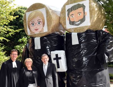 Fast eine Stunde lang schüttete das Ehepaar Wendland nach dem Gottesdienst Hände, nahm Glückwünsche und Geschenke entgegen. Der Gottesdienst war von mehreren Chören mitgestaltet worden. Die Kindergartenkonder standen mit Sonnenblumen in der Hand an der Kirchentür Spalier als das Pastorenpaar die Kirche verließ.