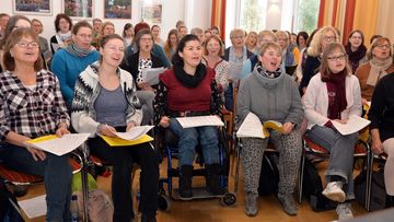 Die Vorfreude auf das Konzert trägt zur großartigen Stimmung während des Workshops bei. Ob Glück, Trauer, Sorge oder einfach nur Spaß an den Songs und am Singen, jedes Gefühl hat in der Gemeinschaft seinen Platz. Eben wie auf einem Abend mit vielen guten Bekannten.