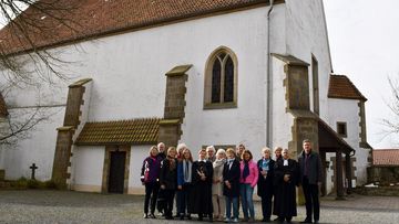 In der nach Coronaregeln voll besetzten Kirche begrüßte Superintendent André Ost in der anschließenden Gemeindeversammlung die Gemeindeglieder und stellte das Visitationsteam vor. „Die Predigt hat schon vieles angesprochen, um was es in der Visitation geht“, sagte er. Im Jahr 2008 habe die Gemeinde Tecklenburg die Vereinigung der Gemeinden Tecklenburg, Ledde, Leeden und Brochterbeck vollzogen. Dies sei eine Zeit voller Umbrüche gewesen, so Ost. Bei der jetzigen Visitation gehe es um die Frage: Wie sieht die Zukunft der Gemeinde in ihren nächsten Entwicklungsschritten aus? “Wir wollen der Gemeinde Ermutigung geben und den Blick gleichzeitig in die Nachbarschaftsregion der Kirchengemeinden Westerkappeln, Lotte und Wersen-Büren richten“. Die Schwerpunkte der Visitation seien Zukunftsfragen rund um das haupt- und ehrenamtliche Personal, den Gemeindehaushalt, die Gebäudebewirtschaftung und die Friedhofsverwaltung. Die Haltung des Visitationsteams sei von Neugier und Offenheit geprägt, so der Superintendent.