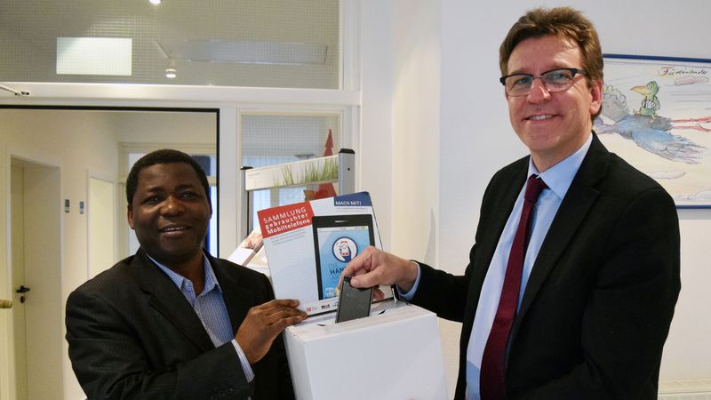 Im Rahmen eines Pressegesprächs haben jetzt Superintendent André Ost und Regionalpfarrer Dr. Jean-Gottfried Mutombo (Amt für Mission, Ökumene und Weltverantwortung, MÖWe) die Handy-Aktion NRW vorgestellt. Während der Finanzsynode im November 2019 hat der Regionalpfarrer bereits alle Synodalen über die Aktion informiert. Die Handy-Aktion NRW, eine Initiative von Kirchen und der Eine-Welt-Arbeit, ruft zum Sammeln alter Handys für das Recycling auf. Mit dem Erlös ihrer Sammelaktionen werden Menschenrechtsprojekte von Brot für die Welt und der Vereinten Evangelischen Mission unterstützt. „Die Handy-Aktion NRW läuft in der Evangelischen Kirche von Westfalen seit zwei Jahren. Mittlerweile konnten wir mit dem Erlös der recycelten Handys in Höhe von 18.000 € Projekte von Brot für die Welt unterstützen“, freut sich der Regionalpfarrer.