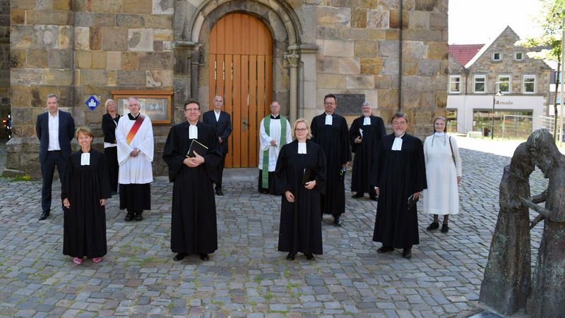 Superintendent André Ost hob in seiner Ansprache auf das Jesuswort aus Matthäus 11,28 „Kommt her zu mir, alle, die ihr mühselig und beladen seid; ich will euch erquicken“ ab. „In Jesu Namen Menschen in den Grenzerfahrungen ihres Lebens, wenn Krankheit und Sterben die gewohnten Linien des Lebens durchkreuzen, zu begleiten, ihnen Zeit und Zuwendung zu schenken und so vielleicht dazu beizutragen, dass sie sich verstanden, gestärkt, befreit fühlen, dazu ist Seelsorge am Krankenbett gut“, so Ost. Dafür sei Zuhören, Hinhören, Wahrnehmen und Nachfragen wichtig. Andrea Klausmann hat ihren Dienst als Seelsorgerin am Klinikum Ibbenbüren am 1. Mai 2020 begonnen. „Wir sind sehr froh, in ihr eine Pfarrerin gefunden zu haben, die bereits viel Erfahrung aus der Krankenhausseelsorge mitbringt“, betonte André Ost. Andrea Klausmann ist bereits seit zehn Jahren im Nachbarkirchenkreis Münster in der Krankenhaus- und Hospizseelsorge tätig gewesen. Sie hat ein Studium der Supervision und eine psychotherapeutische Grundausbildung absolviert und sich stetig fortgebildet. „Wir empfinden Ihre Ankunft als eine Stärkung der synodalen Dienste und der seelsorglichen Kompetenz in unserem Kirchenkreis“, freute sich der Superintendent.