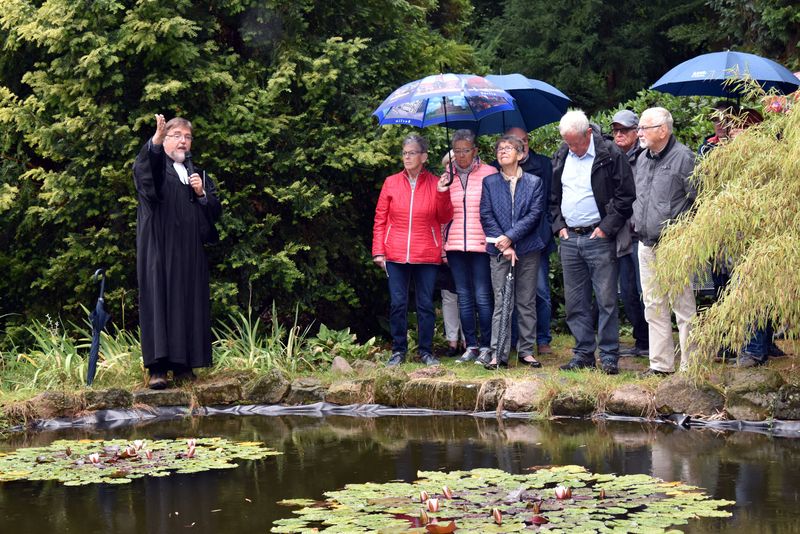 „Wir feiern Gottesdienst heute Morgen im Botanischen Garten in Dörenthe – wer hätte daran gezweifelt?“, zeigte sich Pfarrer Reinhard Lohmeyer zur Begrüßung fröhlich-optimistisch, und gab auch gleich seiner Begeisterung darüber Ausdruck, dass trotz der schlechten Wetterprognosen rund 100 Menschen gekommen waren. 280 waren es im letzten Jahr, aber da spielte eben auch Petrus mit.