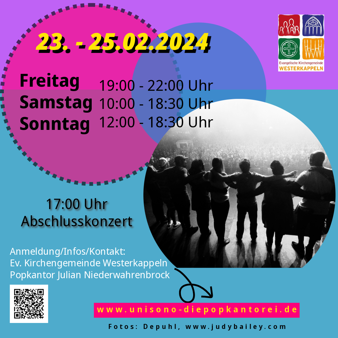 Mit der Unterstützung ihres Teams werden einige ihrer neuen und alten Lieder im Stil von Gospel und Worship-Songs von den Teilnehmenden einstudiert werden. Neben dem Singen gibt es auch die Möglichkeit, das rhythmische Musizieren mit Percussion-Instrumenten kennenzulernen. In diesem Jahr wird es Chorstücke mit Rap-Parts geben. Es verspricht also ein abwechslungsreiches Programm zu geben. Neben der Unterstützung von Popkantor Julian Niederwahrenbrock sind auch einige Helfer aus der Pop-Kantorei „Unisono“ dabei. Der Workshop beginnt am Freitag, 23. Februar, und endet mit einem Abschlusskonzert am Sonntag, 25. Februar.