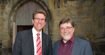 Diese Grundhaltung wurde auch in dem Grußwort von Cornelia Ebert, Vertreterin der Stadt Ibbenbüren deutlich. Die Stiftung sei ein kreativer Weg, um künftige Herausforderungen stemmen zu können, stellte die Erste Beigeordnete fest. André Ost, Superintendent des Kirchenkreises Tecklenburg, nahm den Text des Pfingstkanons von Thomas Tallis „Im Geiste sind wir aufgekratzt, sind durch den Wind auf diesem Platz“ noch einmal auf, den der Chor zuvor von Christian Schauerte begleitet, gesungen hatte. „So unbegreifbar und unanschaulich dieser Heilige Geist auch ist, so wertvoll ist er doch für unseren Glauben“, betonte Ost. Der Geist Gottes sei der Geist der Wahrheit, der Kraft, der Liebe und des Friedens, sagte er in seiner Predigt. Darin ging er zudem konkret auf die Ziele der Stiftung ein: Dem Wort Gottes Raum geben und dem Traum von Kirche Leben geben.