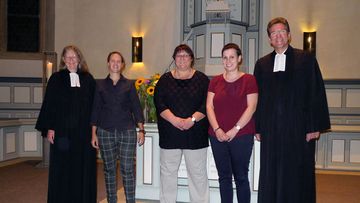 André Ost bedankte sich bei Pfarrerin Miriam Seidel für ihren Einsatz in der Vakanzvertretung und hob vor allem die Konfirmandenarbeit, ihren Notfallseelsorgeeinsatz im Februar und ihre Kreativität bei der Gestaltung digitaler Gottesdienste hervor. Da Miriam Seidel seit dem 1. September in Ladbergen tätig ist, hat der Superintendent Pfarrerin Lena Stubben nach Lienen entsand. Sie wurde von der Presbyteriumsvorsitzenden Dagmar Kortepeter herzlich begrüßt und freut sich auf die anstehenden Aufgaben. Der Stellenumfang von Lena Stubben beträgt 100 Prozent. Damit ist der Pfarrdienst in Lienen mit den 40 Prozent von Pfarrerin Westermann nun wieder abgedeckt.