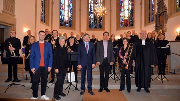 „Nicht so viele Worte zu machen, sondern Musik zu hören“, hatte sich der evangelische Pfarrer zu Beginn des Gottesdienstes vorgenommen und zog mit seinen Ausführungen die Gemeinde und die Ehrengäste dann doch in seinen Bann. Die Bläserinnen und Bläser nahmen es nicht übel, freuten sich über das Lob und bewiesen klangvoll, dass sie sich ihrer Bedeutung bewusst sind und inzwischen auch nicht mehr mit Synkopen hadern.