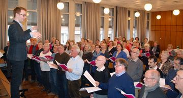 Unter Leitung von Arndt Henzelmann, A-Kirchenmusiker aus Köln/Berlin, lernten die Chorsänger sechs sehr unterschiedliche Chorstücke kennen. Die stilistische Bandbreite der Stücke reicht von einem Schütz-Psalm über einen Chorsatz aus Saint-Saens Weihnachtsoratorium, einem Segenslied von John-Rutter bis zu einer Swing-Motette von Johannes Michel.