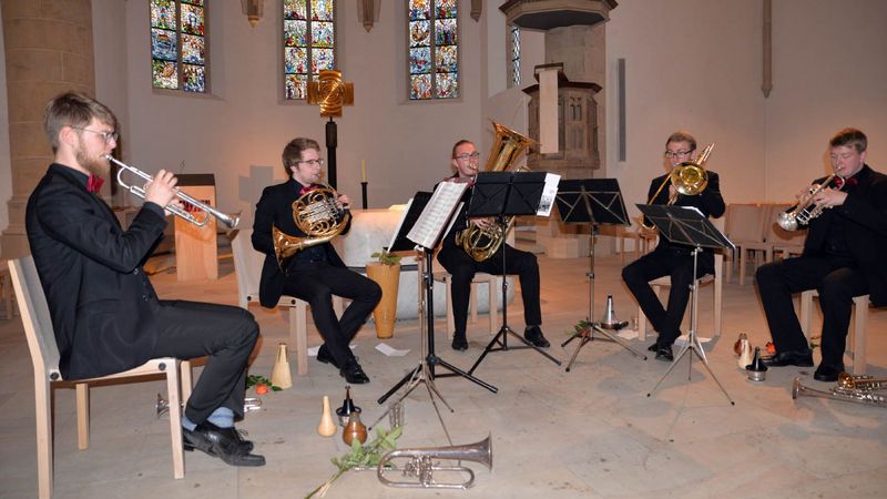 Die Studenten Torben Pannen (Trompete), Simon Weymann (Trompete), Matthias Meßmer (Horn), Jonas Kruse (Posaune) und Steffen Schulte (Tuba) machten es den Zuhörern im Kirchenraum einfach, den bunten Mix zu genießen. Sie brillierten nicht nur an ihren Instrumenten, sondern führten auch charmant und locker durch das eineinhalbstündige Konzert.