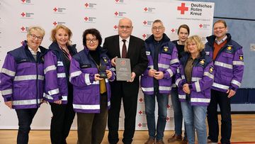 Ein besonderes Augenmerk setzte Laudator Heinz-Wilhelm Upphoff, der Vizepräsident des DRK-Landesverbands, auf die Einsatzkräftenachsorge (EKN). Sie gibt den Einsatzkräften die Sicherheit, nach belastenden Einsätzen betreut zu werden. Die Einsatzkräftenachsorge wurde 2012 von Christian Pill (DRK) und Alexandra Hippchen (NFS) gegründet.