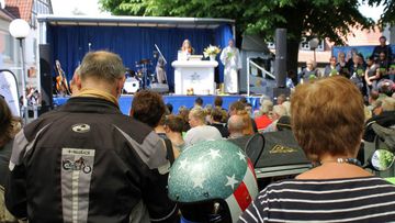 So viele Besucher wie in diesem Jahr seien es noch nie gewesen, freuen sich Brockmann und seine evangelische Kollegin Verena Westermann auf der eigens errichteten Bühne neben der Kirche. Beileibe nicht nur Biker tummeln sich zwischen Imbissstand der Landfrauen und Live-Musik. Auch viele Lienener Bürger bewundern die PS-starken Zweiräder und schmunzeln über den Psalm für Motorradfahrer. „Bewahre uns vor Punkten in Flensburg, vor den Laser- und Radarfallen der Polizei“, heißt es dort. Doch da müssen sich die wenigsten Gedanken machen: die Zuneigung zum Bike ist viel zu groß, um einen einkassierten Lappen zu riskieren.