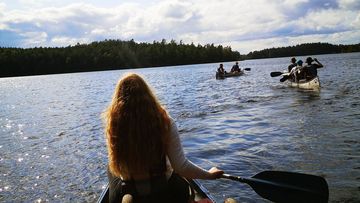 Abends am Lagerfeuer wurde gemeinsam gekocht, bei persönlichen Spiel- und Fragerunden klangen die Tage aus. Unterm Sternenhimmel in der Hängematte oder im Zelt ließen sich die teilweise trageintensiven Übergänge zwischen den einzelnen Seengebieten gut verkraften. Die tägliche Suche nach einem geeigneten Anlege- und Schlafplatz, sowie das Organisieren der Mahlzeiten und Trinkwasserstellen waren bewusst gewählter Bestandteile des Abenteuers. Der Gedanke, eine solche Reise selbstständig organisieren und anleiten zu können, fruchtete bei der Mehrzahl der Teilnehmenden. Für die erfolgreiche Durchführung waren mehrere Aspekte entscheidend: jede Menge Muskelkraft, um die voll beladenen Kanus über Waldwege und Stromschnellen zu tragen und so zum nächsten Übernachtungspunkt paddeln zu können. Die Solidarität zwischen den Teilnehmenden, sich gegenseitig zu unterstützten und einen gemeinsamen Rhythmus im Paddeln zu finden. Und der Wille, die Grenzerfahrung angesichts der schnell wechselnden Witterungsverhältnisse auszuhalten und die eigene Komfortzone zu erweitern. Die Teilnehmenden hatten zum Ende der Fortbildung gleich mehrere Highlights zu benennen: mit minimalistischem Gepäck unterwegs zu sein, sich auf die Grundbedürfnisse zu konzentrieren und sich mit der Natur der schwedischen Seenlandschaft verbunden zu fühlen.