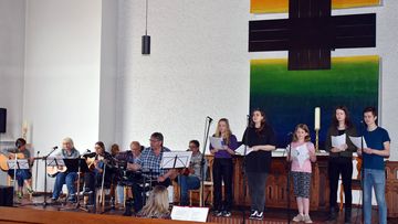 Am vorletzten Maiwochenende wurde der „Musikworkshop“ wiederbelebt, diesmal zum Thema „Frieden“ und – konsequenterweise – mit einem „Friedensgottesdienst“ in der passenderweise auch „Friedenskirche“ genannten Hauptkirche der Gemeinde.