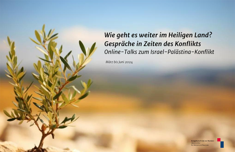 So ist eine Reihe von Online-Gesprächen entstanden, die von März bis Juni 2024 in unregelmäßigen Abständen Einblicke in die gegenwärtige Situation des Nahen Ostens ermöglicht. Zudem sind diese Gespräche für unsere Gesprächspartner*innen in Israel und Palästina ein Zeichen unserer Verbundenheit mit ihnen. Wie sehen unsere ökumenischen Partnerinnen und Partner im Heiligen Land den 7. Oktober und dessen Folgen? Wie hat der Krieg ihre Arbeit beeinträchtigt? Welche Perspektiven sehen sie für die Zukunft der Menschen in Israel und Palästina?