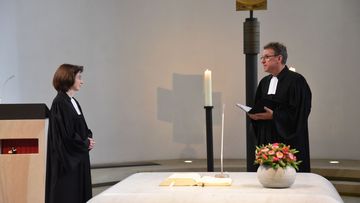 In der Predigt nahm die Pfarrerin Worte aus Psalm 8 auf: „Was ist der Mensch, dass Gott seiner gedenkt?“ Sie stellte fest, dass Gott uns nicht vergisst, sondern sich unser annimmt und uns Aufmerksamkeit schenkt. Dabei schwinge er sich nicht mit unerbittlichem Blick zum „Oberbuchhalter“ auf, sondern gebe Halt und Zuversicht. „Ein Mensch sieht, was vor Augen ist; der Herr aber siehtdas Herz an“, betonte Dr. Wiggermann.