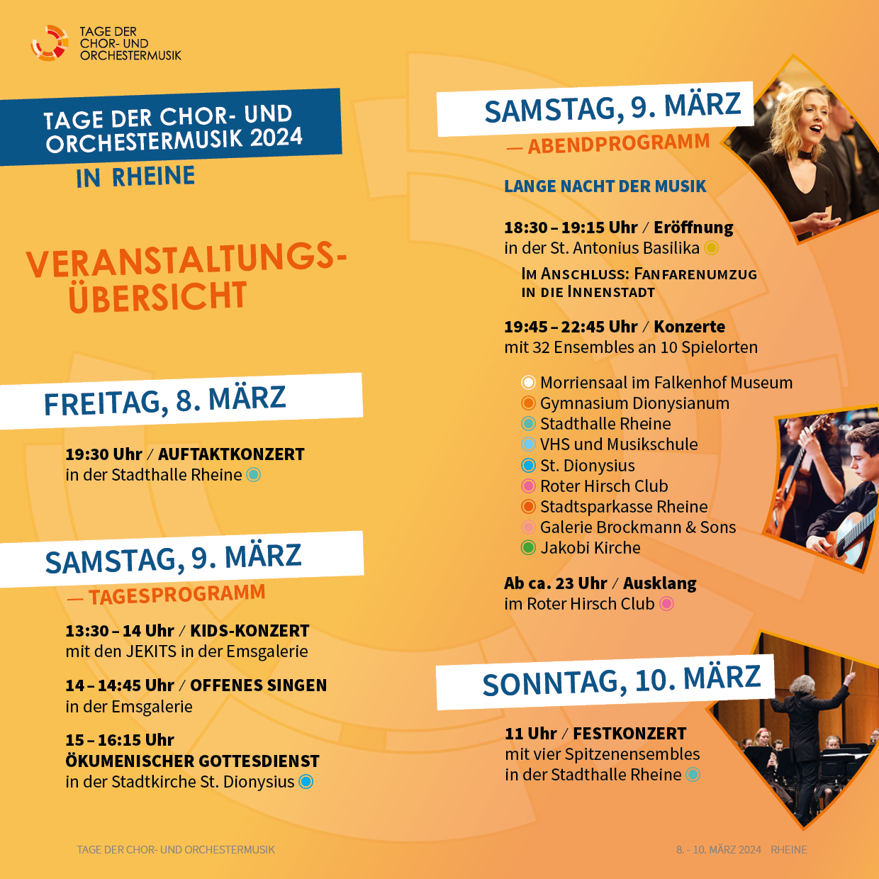 Ob beim Auftaktkonzert, dem offenen Singen, bei der Langen Nacht der Musik oder dem finalen Festkonzert – alle Konzerte sind kostenlos! Im Rahmen des Festival-Samstages findet auch ein ökumenischer Gottesdienst in der Dionysius-Kirche statt, in dem unter anderem das Blechbläserensemble unseres Kirchenkreises beteiligt ist.
