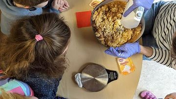Die Kinder konnten zerbrochene Kakaobohnen anfassen und an ihnen riechen. Außerdem stellten sie einen Riechbecher her. Sie setzten sich mit Fragen der Kinderarbeit, dem Umweltschutz und einer besseren Bezahlung für fair angebauten Kakao auseinander. Einen Brief von „Daniel“, einem Jungen von der Elfenbeinküste, der über seinen Alltag berichtet, haben sie mit Spannung gelesen. Außerdem bastelten die Kinder einen Einkaufshelfer für jede Familie. Der Einkaufshelfer unterstützt die Familien dabei, fair gehandelte Produkte zu erkennen. Beim Blick auf den Globus wurde den Kindern deutlich, welchen weiten Weg eine Kakaobohne zurücklegt, bis die Schokolade bei uns im Geschäft ankommt.