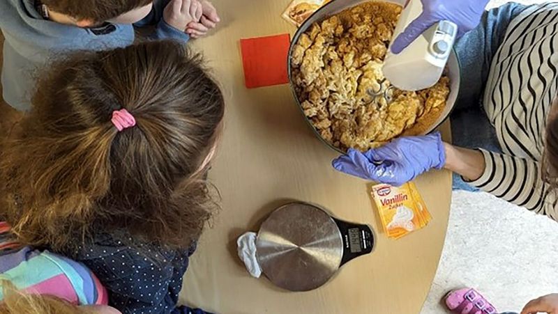 Zum Abschluss dieses Projektes haben die Kinder mit dem Team fleißig gebacken. Das Backwerk gab die Einrichtung den Familien gegen eine Spende für „Brot für die Welt“ mit. Das ev. Hilfswerk „Brot für die Welt“ unterstützt rund 1.800 Projekte in mehr als 80 Ländern. Viel Spaß hatten die Kinder, als sie den Erwachsenen die süßen Sachen eingepackt übergaben.