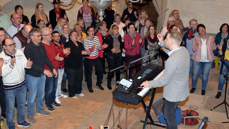 „Der Input ist grandios“, fand Ufermann. Schmunzelnd warnte er die Kirchenbesucher, sie sollten sich auf etwas gefasst machen. Er hatte nicht zu viel versprochen. Lass aber ebenfalls nicht, als er den Sängerinnen und Sängern im Workshop versichert hatte, dass der Abschluss in der Kirche perfekt klappen würde.