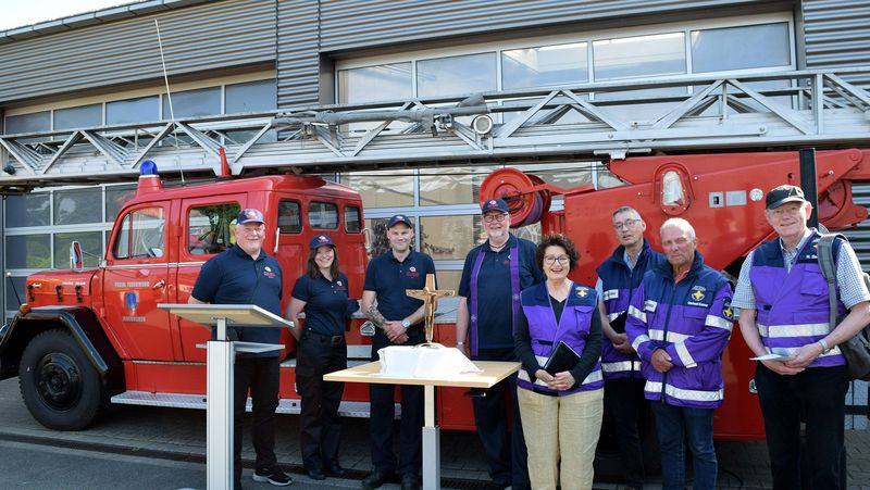 Und der Gottesdienst gab allen Beteiligten unter freiem Himmel in entspannter sommerlicher Atmosphäre viel Stärkung und Glaubenskraft mit auf den Weg. Musikalisch begleitete Organistin Maria Nolte aus der Kirchengemeinde Ibbenbüren am E-Piano Lieder wie „Ich lobe meinen Gott, der aus der Tiefe mich holt“ und „Laudate omnes gentes“ („Lobsingt, ihr Völker alle“). In ihrer Dialogpredigt nahmen Alexandra Hippchen, landeskirchliche Pfarrerin für Notfallseelsorge und Notfallbegleitung im Münsterland, und Pfarrer Jörg Zweihoff Bezug auf das Vaterunser, das Gebet, in dem alle Bedürfnisse der Menschen enthalten sind. Nicht zu plappern wie die Heiden, sondern um das zu bitten, was lebensnotwenig sei, trägt Jesus in der Bergpredigt seiner Hörerschar auf. „Wie leben wir in einer Welt, die so überdeutlich voll ist von Unglück, Ungerechtigkeit und Tod?“ fragte Hippchen. Im Vaterunser werde keine Versprechung dazu gemacht, dass die Welt besser werde. Aber: Gott führt das Volk Israel aus der Sklaverei in Ägypten. Und Gott stellt sich vor als der, der nur in Beziehung erkennbar wird. „Gott sieht das Unglück der Menschen. Er ist zornig über das Unrecht. Er begleitet seine Menschen, die die Befreiung ersehnen“ so Alexandra Hippchen weiter. Jörg Zweihoff erinnerte an den tragischen Angriff auf Feuerwehrleute in Ratingen und an den rechtsextremen Terroranschlag in Lienen, bei dem ein Feuerwehrmann starb.