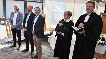 „Willkommen auf der Großbaustelle“ hatten Superintendent André Ost und Pfarrerin i. R. Ulrike Wortmann-Rotthoff diesen Gottesdienst genannt, um damit auf die Umbruchsituation anzuspielen: Die LeWe haben im vergangenen Jahr eine komplett neue Unternehmensleitung bekommen. Dr. Frank Plaßmeyer als Geschäftsführer, Christian Maas (Geschäftsfeldleitung Wohnen und Individuelle Dienste) und Andreas Laumann-Rojer (Geschäftsfeldleitung Arbeit und Berufliche Bildung) leiten nun die Geschicke und wurden von Ulrike Wortmann-Rotthoff eingesegnet.