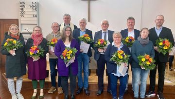 Gleichzeitig wurde das neue Presbyterium herzlich willkommen geheißen und offiziell in sein Amt eingeführt. Christiane Außendorf, Karin Beckmann und Petra Berndzen komplettieren das neue Leitungsgremium, bestehend aus Sönke Delarue, Jochen Felber, Herbert Schäfer und Jürgen Wittmann. Mit einem feierlichen Gebet und der Segnung durch Pfarrer Wulf wurden sie ermutigt, ihre Verantwortung weise und klug auszufüllen.